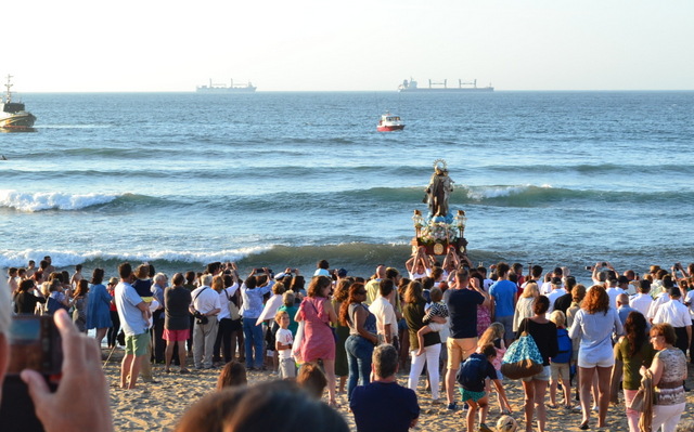 Como marca su tradición, a las 19,30 partía de la Iglesia Parroquial la Procesión con la Imagen de Nuestra Señora del Carmen a hombres de los Jóvenes de la Parroquia, que este año estrenaban «paso» , portando a hombres la Imagen de María hasta la plaza del Náutico, donde a partir de las 20.00 horas se iniciaba la Misa Solemne, seguida del tradicional baño de la Virgen del Carmen y Bendición de las Aguas, con un recuerdo a los fallecidos en el mar.