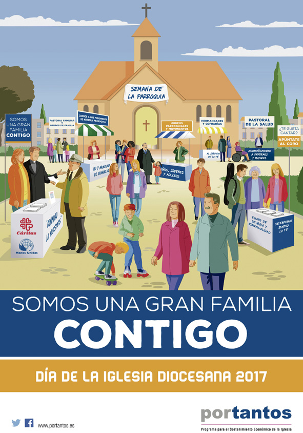 “Somos una gran familia contigo” es el lema del Día la Iglesia Diocesana 2017 que se celebra el próximo 12 de noviembre. El secretariado para el Sostenimiento de la Iglesia nos invita a colaborar con nuestra parroquia aportando lo que tenemos: cualidades, tiempo o dinero. Somos la familia de los hijos de Dios y como familia todos somos corresponsables de su labor y de su sostenimiento.