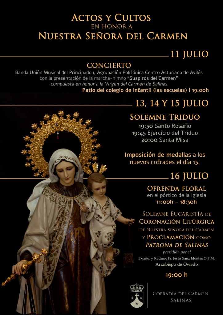 Actos y Cultos en Honor a NUESTRA SEÑORA DEL CARMEN. 4Jul 2021 Nuestra Cofradía del Carmen nos presenta el PROGRAMA de Actos y Cultos en HONOR DE NUESTRA SEÑORA DEL CARMEN, y nos INVITA a participar en todos ellos. Comparte esto: Haz clic para compartir en X (Se abre en una ventana nueva) X Haz clic para compartir en Facebook (Se abre en una ventana nueva) Facebook Haz clic para compartir en Tumblr (Se abre en una ventana nueva) Tumblr Haz clic para compartir en Pinterest (Se abre en una ventana nueva) Pinterest Haz clic para enviar un enlace por correo electrónico a un amigo (Se abre en una ventana nueva) Correo electrónico Haz clic para imprimir (Se abre en una ventana nueva) Imprimir Me gusta Cargando... Relacionado