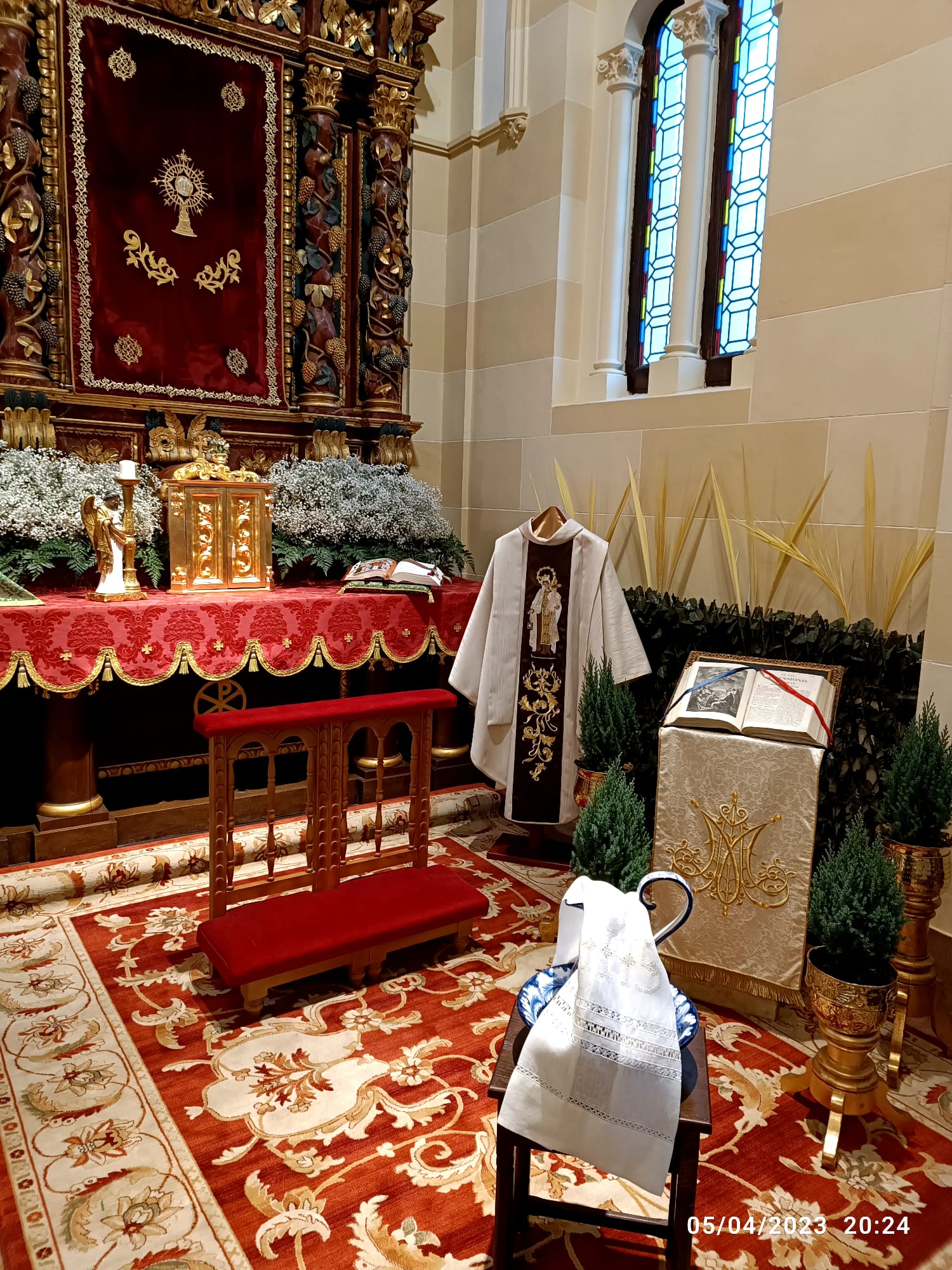 Preparación y diseño del Templo para las Ceremonias Litúrgicas del Jueves Santo, son obras de D. Jorge Torres. Nuestra Felicitación y Agradecimiento por su dedicación, trabajo y entrega.