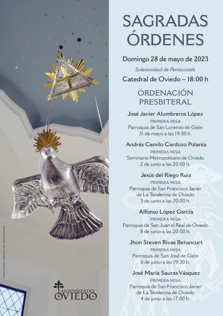 Este 28 de mayo, domingo, solemnidad de Pentecostés, tendrá lugar en la Catedral de Oviedo, a las 18 h, la Ordenación Presbiteral de los diáconos: