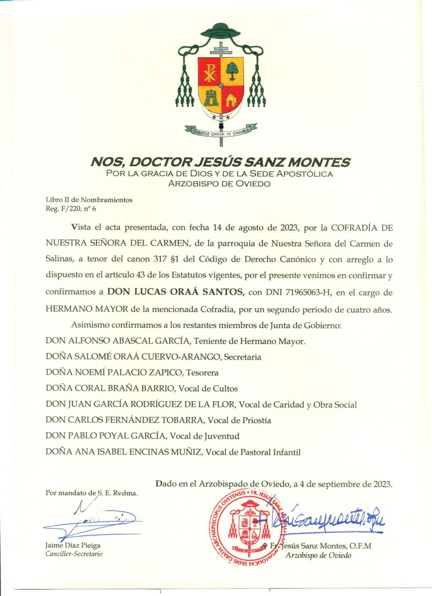 Este domingo 10 de septiembre, tras la celebración de la Santa Misa de las 20:00 horas, los miembros de la Junta de Gobierno, encabezada de nuevo por D. Lucas Oraá Santos, juraran y tomarán posesión de sus cargos.