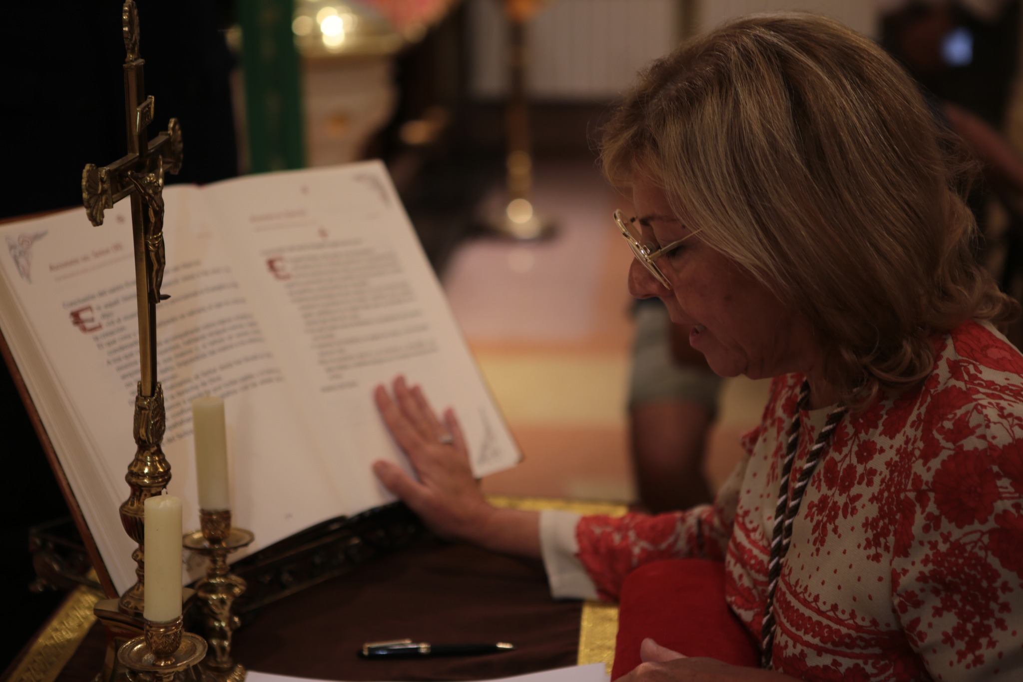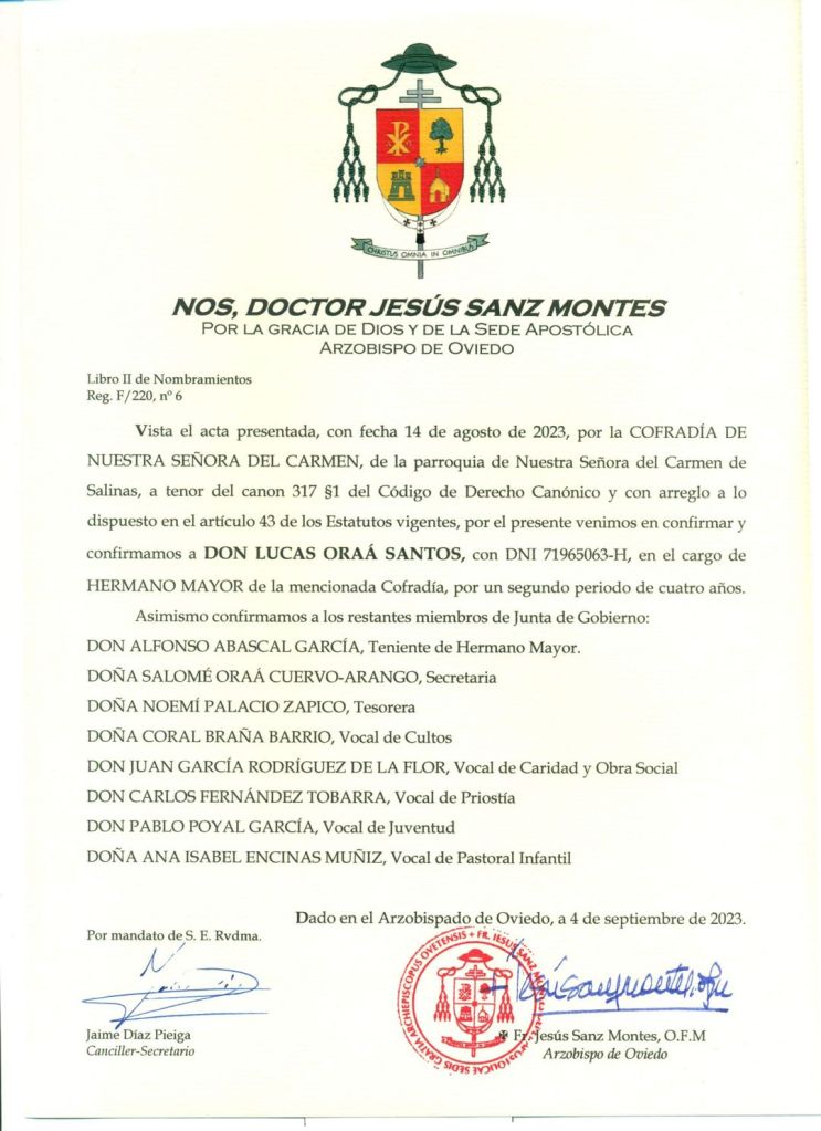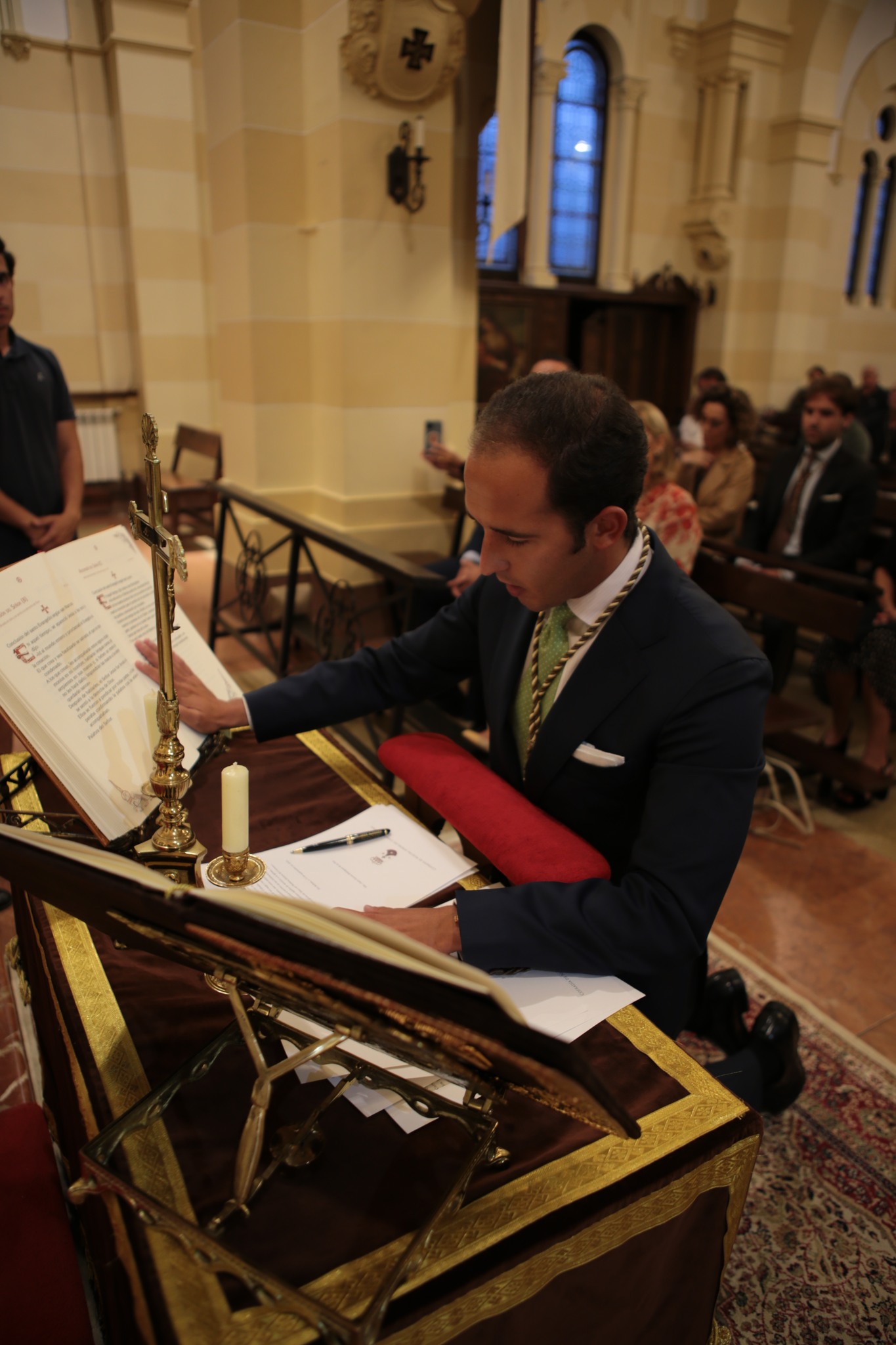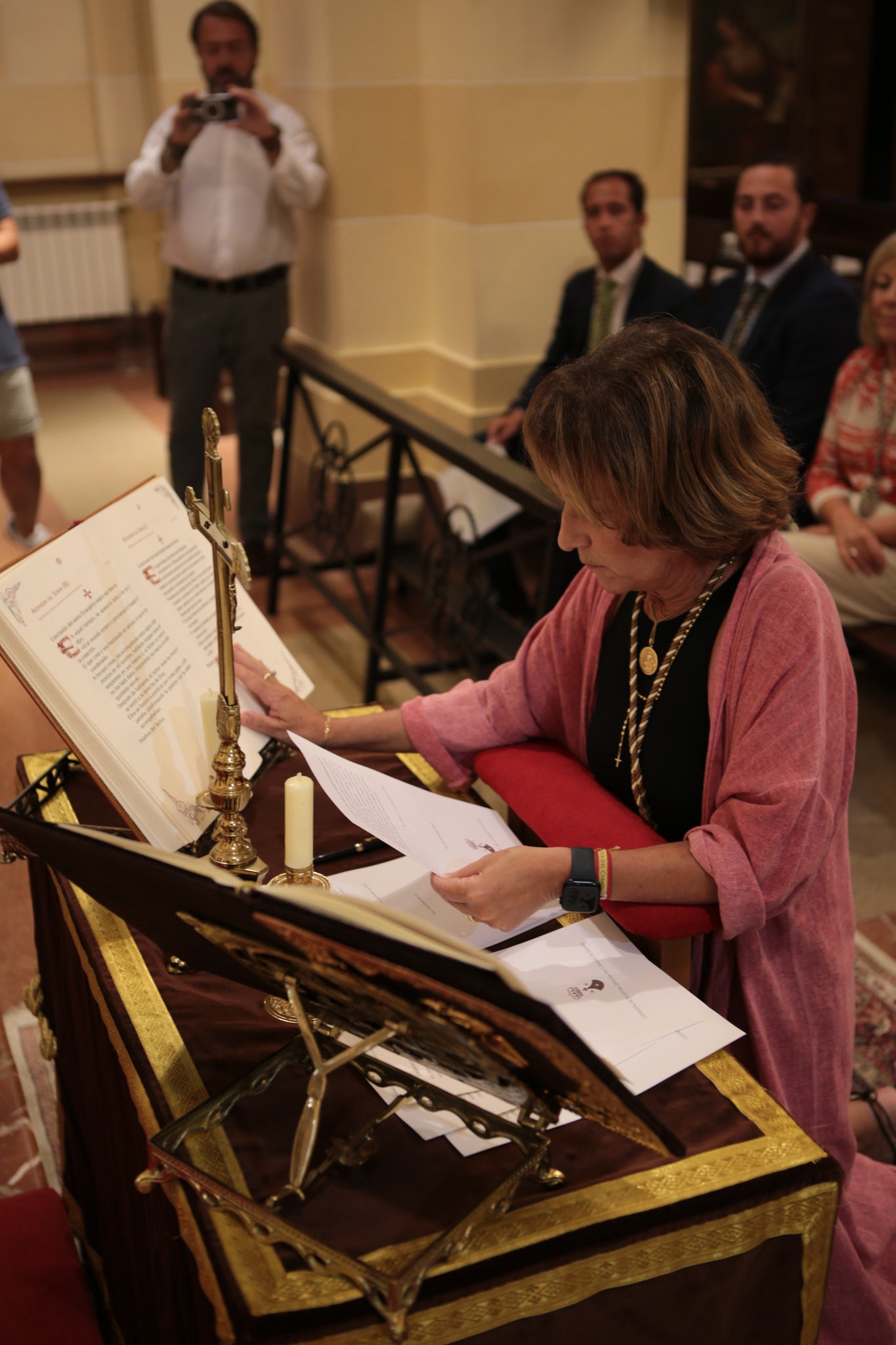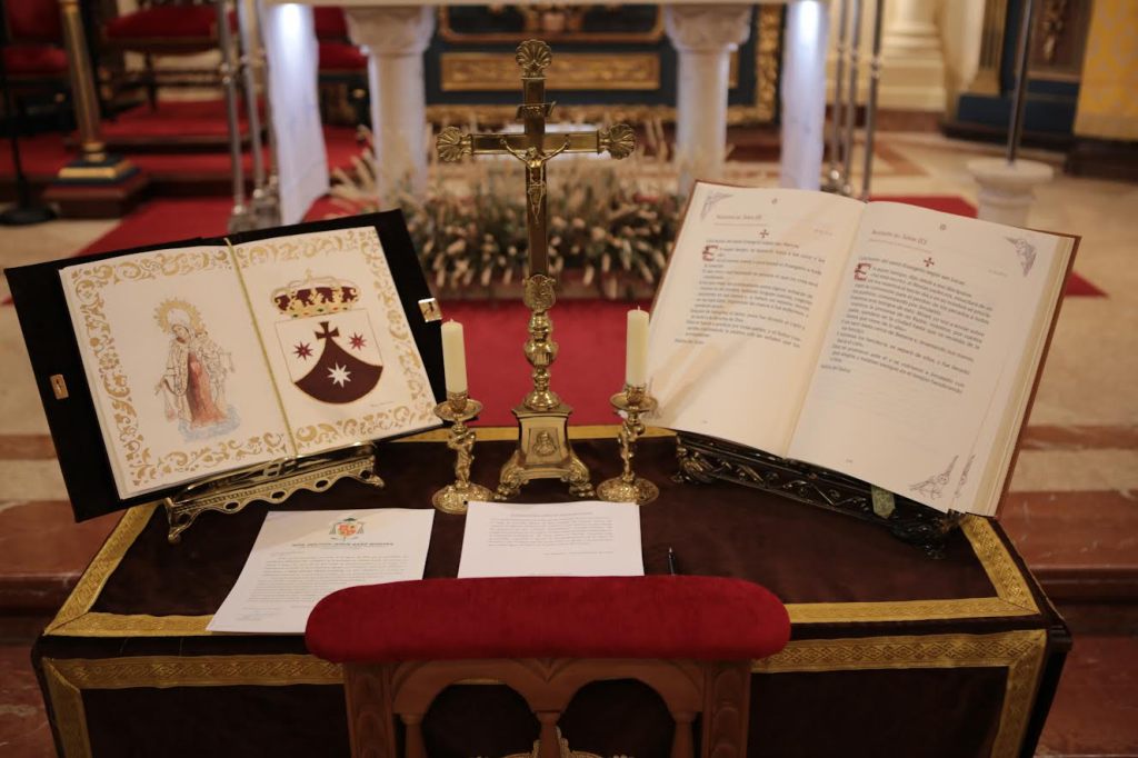 El domingo 10 de septiembre, tras la celebración de la Santa Misa de las 20:00 horas, los miembros de la Junta de Gobierno, encabezada de nuevo por D. Lucas Oraá Santos, han jurado y tomado posesión de sus cargos. Felicidades a todos por su trabajo y dedicación día a día en pro de Nuestra Cofradía del Carmen. Como creyentes el dar ese paso, no sólo es un ejemplo para todos nosotros, sino supone además vivir el día a día nuestra «Fe» y cumplir el primero y más importante de todos los mandamientos: «Amar a Dios sobre todas las cosas y al Prójimo como a uno mismo», haciendo todo ello con la ayuda y protección de Nuestra Madre del Cielo, la Virgen del Carmen.