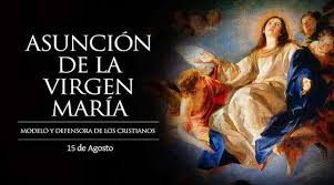 Solemnidad de la Asunción de la Virgen María al Cielo, completada su vida terrenal, la Virgen María, Madre de Dios, fue llevada al Cielo en cuerpo y alma.