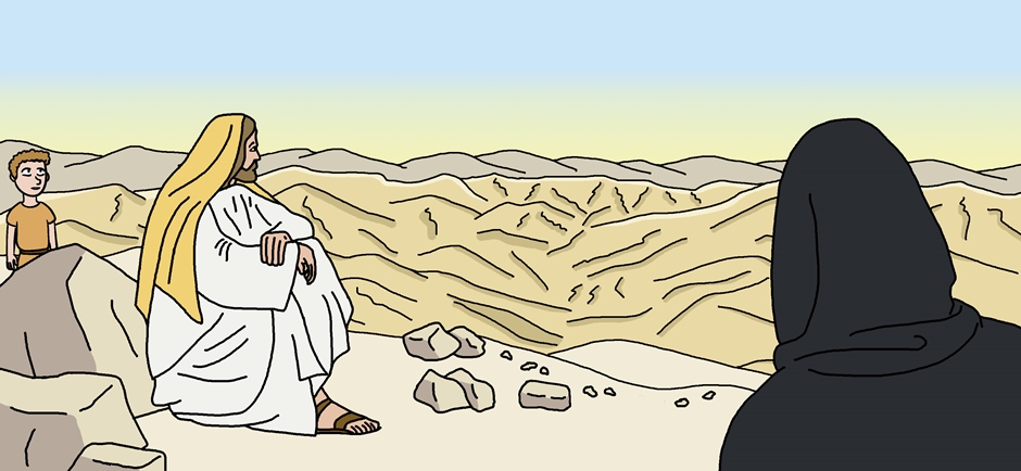 Jesús es llevado por el Espíritu Santo al desierto para ser tentado por el diablo.