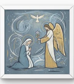 Ella se turbó grandemente ante estas palabras y se preguntaba qué saludo era aquél. El ángel le dijo: